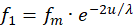From the cable equation for non-markless fibers, the fire rate f can be inferred directly. This fire rate f has a neuron that is at a distance x from an input neuron with the fire rate f0 and is connected to it via a non-markless axon. Here, the excitation E is replaced by the fire rate f.