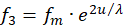 We select for the greatness u the joint angle, the measured value of which is transformed by the responsible receptor (e.g. the tendon organ) into a fire rate with an exponential sensitivity curve. The quantity fm represents the mean rate of fire. It is supplied by the receptor if the original quantity u lies exactly in the middle of the associated measurement interval <u1; u2>.