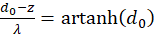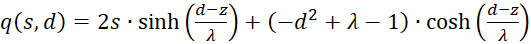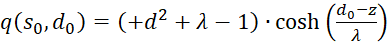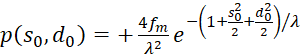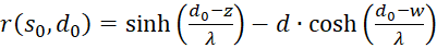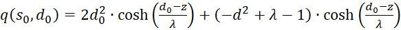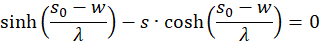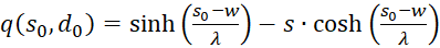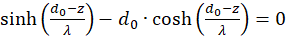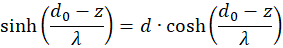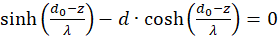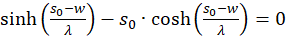The derivatives to s and to d must be zero, so that an extreme value can exist at all (necessary conditions). Since the mean rate of fire fm and λ are greater than zero, the exponential expression is generally greater than zero and the function cosh(x) is greater than 1, the last factor in the brackets must be zero. Thus we obtain two conditional equations for the values so and do, in which an extreme value could exist.