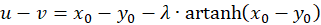 A small restriction for u and v results from the fact that the function artanh(x) is not defined for all x. From a neurological point of view, we are only interested in the maxima within the square with side length 2, whose center is formed by the coordinate origin and in which the output neurons are located.