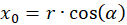 At the point P with the coordinates P = (x ; y), to which the radius vector r belongs, there may be - representative for the many hundreds of output neurons - one output neuron, whose excitation we want to calculate.