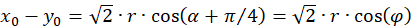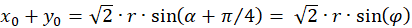 The following equations are obtained for the radius vectors r1 to r4 using the Pythagorean theorem: