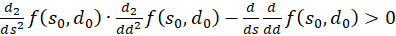 If at the position so and do fs(so, do) = 0 and fd(so, do) = 0 and the inequality