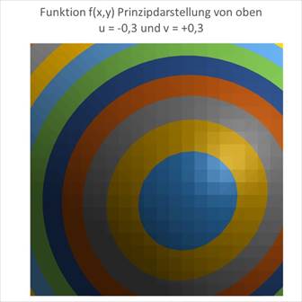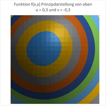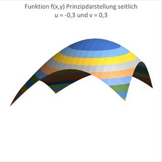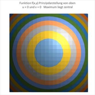We can now get an idea of what the two-dimensional excitation function f(x,y) looks like and that it actually has a maximum at the corresponding point close to the point P(u,v).